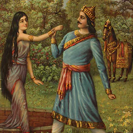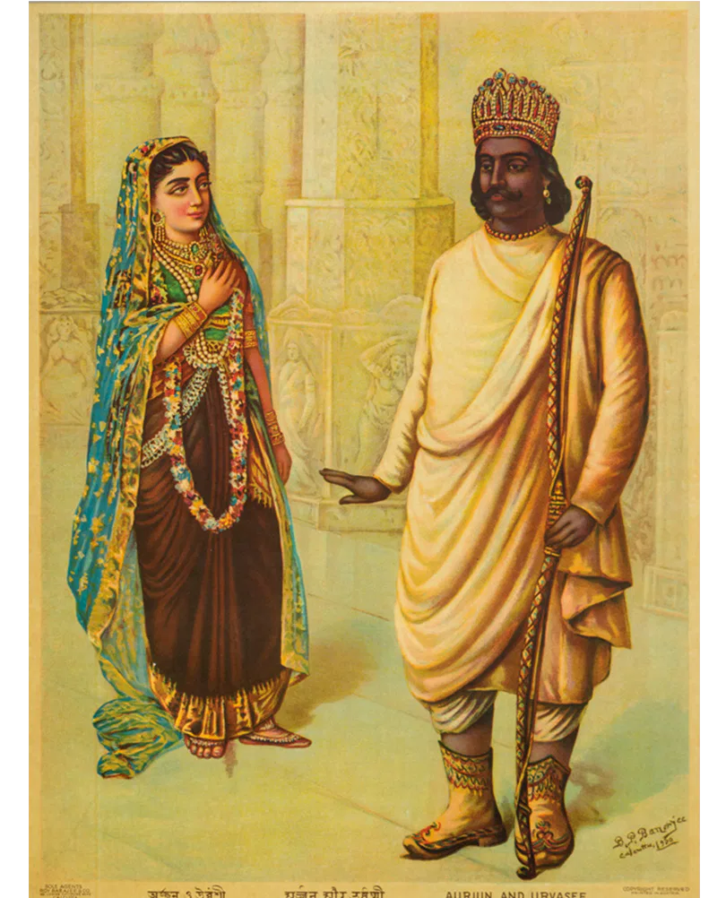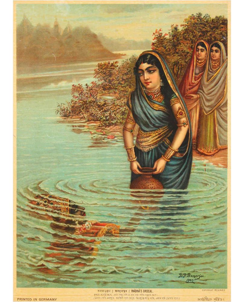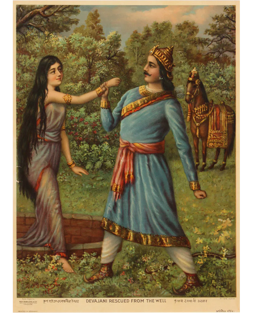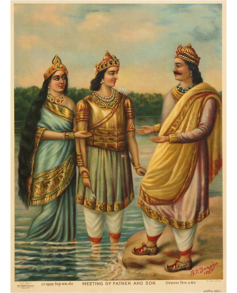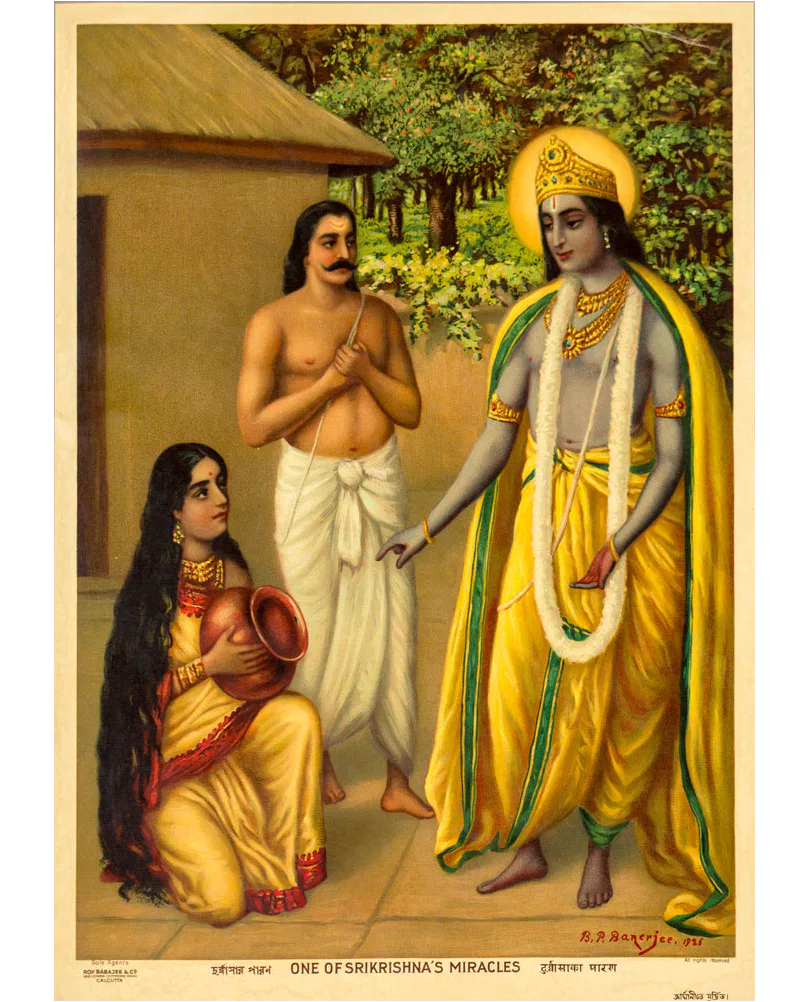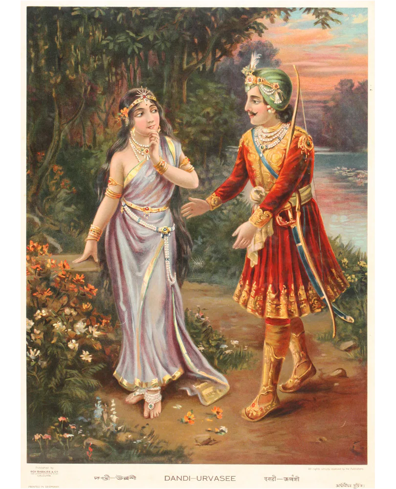 Bamapada Banerjee (1851–1932) received his initial training in painting at the Calcutta Art School but, disillusioned with its pedagogy, he left and took private lessons with Pramathalal Mitra. Subsequently, he worked as an apprentice to the German painter Karl Becker who was then living in Calcutta. He received a prize in an exhibition organized by the Society for the Promotion of Industrial Art in 1879. From 1880 to 1884 he did commissions in Allahabad and Lahore. Bamapada Banerjee’s popularity rests on his paintings illustrating Hindu mythology. He was deeply influenced by the genres of European history painting. Though a junior contemporary of Ravi Varma, the most influential artist of the time, Bamapada evolved an individual style and dominated the popular taste for decades through reproductions of his works, most of which were printed in Germany.