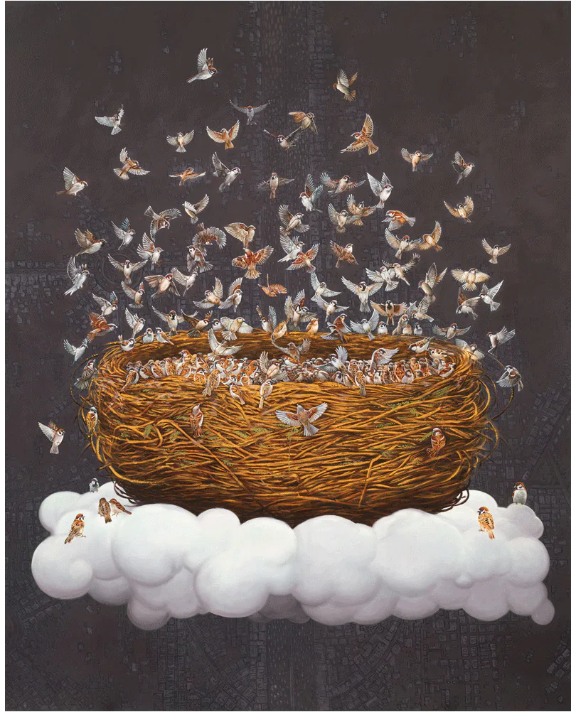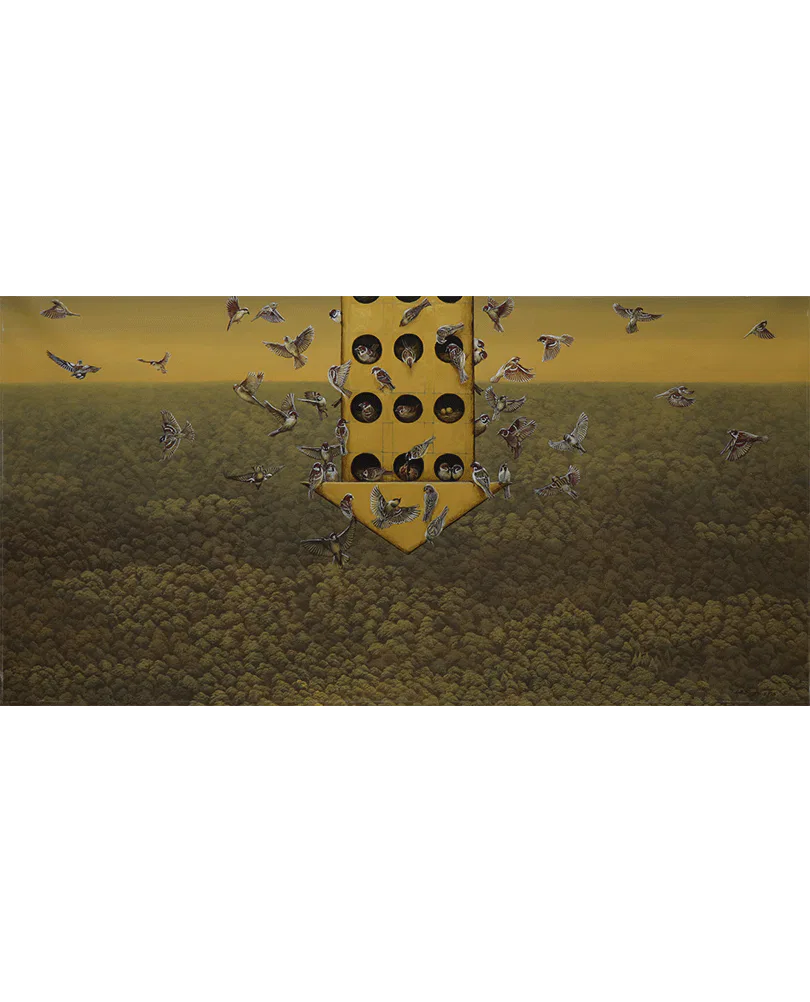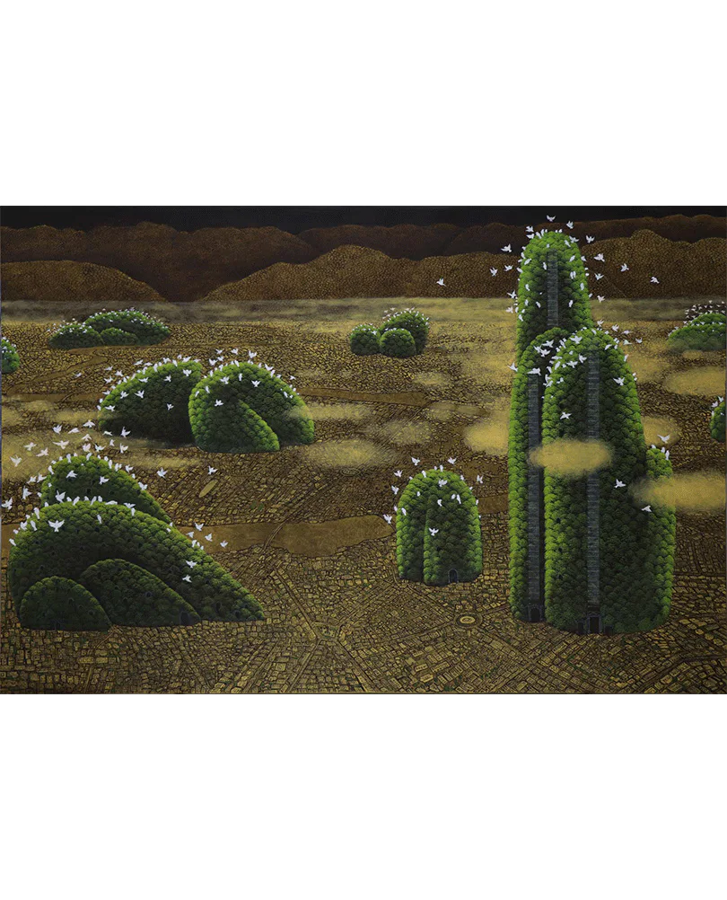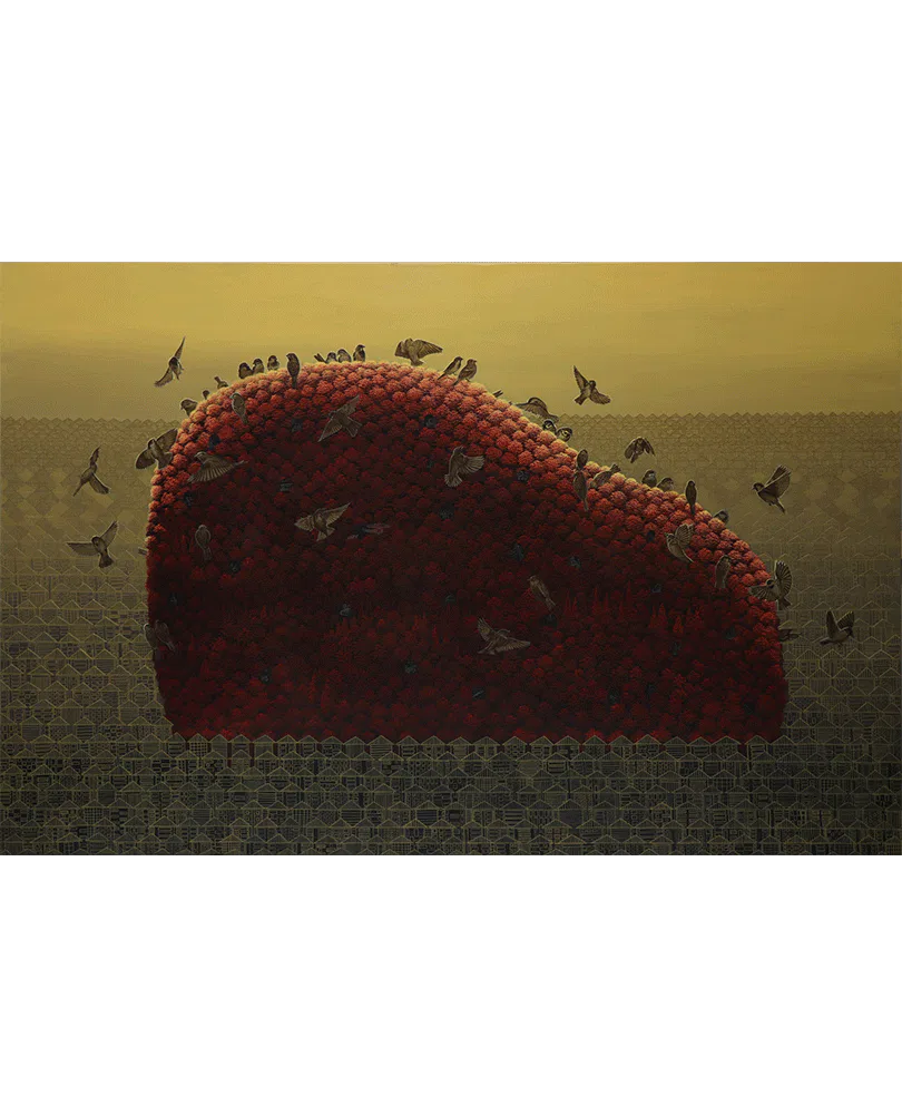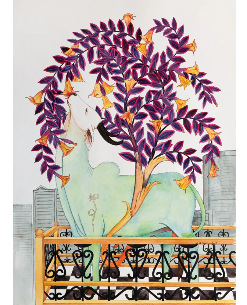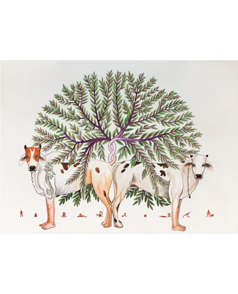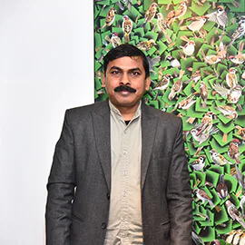 Lal Bahadur Singh was born (1985) in Uttar Pradesh. He studied art in the traditional Guru Shishya Parampara at his native place in Gazipur for three years before shifting his base to Delhi. He completed his Bachelor’s degree followed Master’s degree in Fine Arts from the College of Art, New Delhi. His paintings reflect his upbringing and the environment of Gazipur. His artworks focus on Indian villages which can be seen in the background of his paintings. The tree acts as a central image in most of his paintings along with the image of a cow, bull and birds. The characterization of the urban spaces through glimpses of urban living spaces, but devoid of humans themselves, is unique to his paintings. He is also an integral part of 'Nishant Natya Manch' a theatre group that brings home and conveys social messages through street plays and has also been involved in various social relief work and projects for the poor. Lal Bahadur Singh’s works have been exhibited in several shows across the country. Singh lives and works in Delhi NCR.