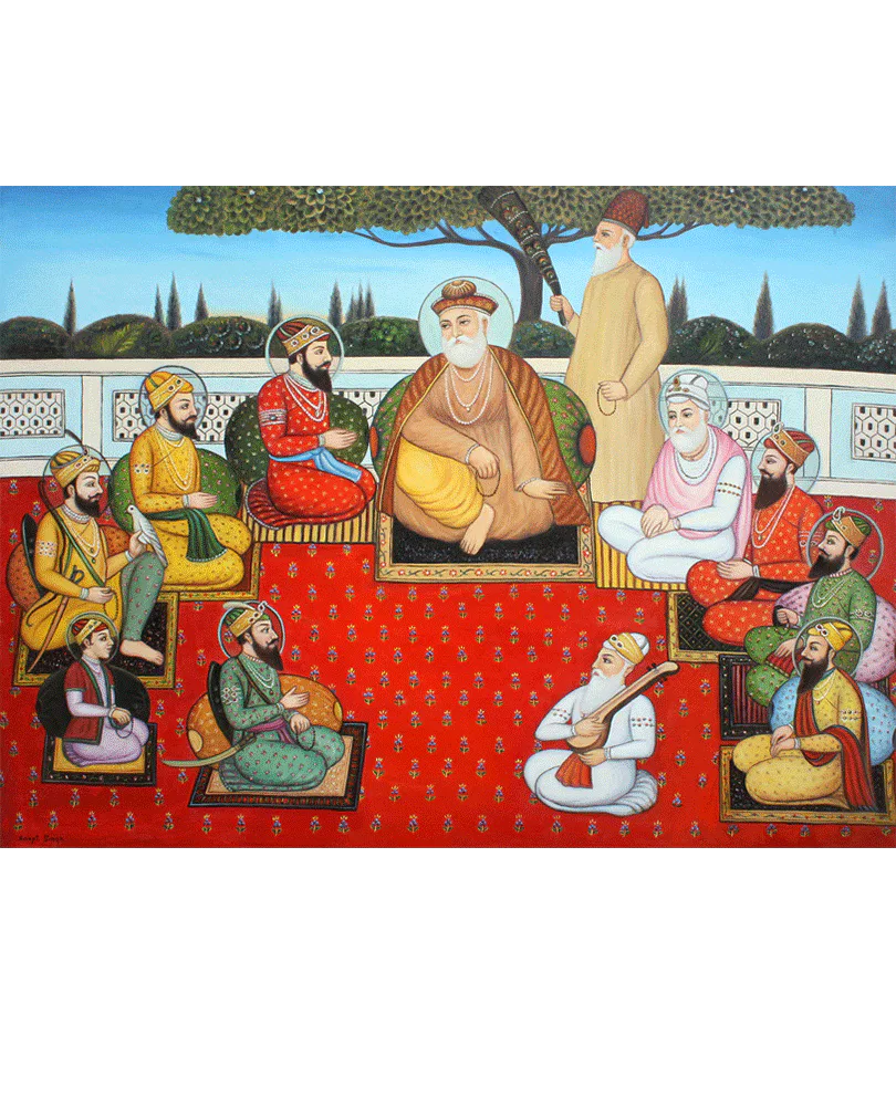 A self-taught artist, Ranjit Singh has an inborn and natural talent for the arts. After many years of working in a non-art background, he decided to leave his earlier job to devote all his time to painting. Greatly inspired by the Indian miniatures Saakhee/Stories from Sikh religion, portraits of Gods and the Sikh Gurus, Ranjit creates awe inspiring art. The artist has not received any formal education in the arts but it is remarkable to note that he doesn’t need to draw or sketch, but is able to paint on the canvas directly. His work is part of many prestigious collections within India and overseas.