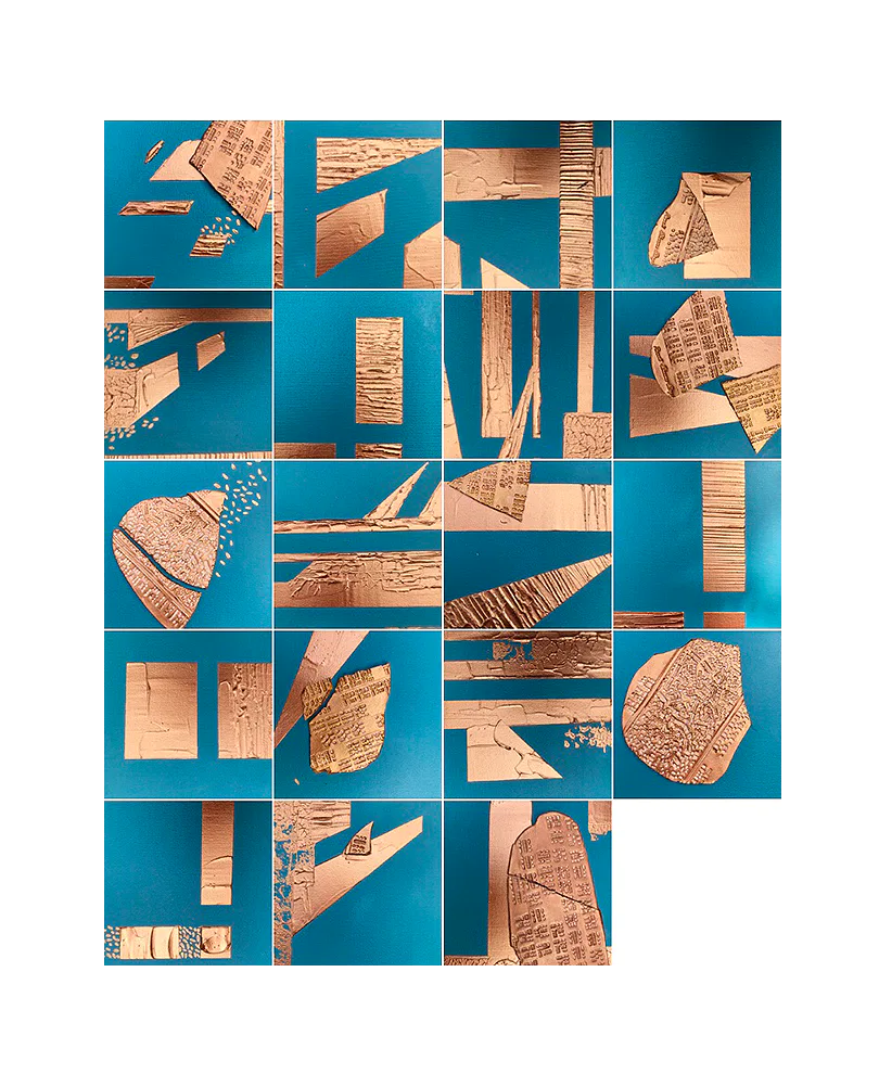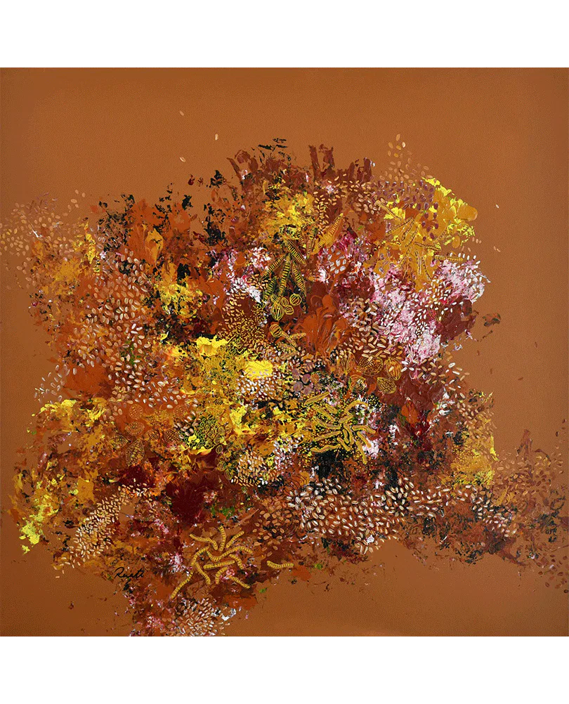 Revati Sharma Singh is an interdisciplinary artist, working between London and India for the last 23 years and her quest has always been about the great divide between hunger and abundance around the world. Using clay, handmade sterling silver, gold, cast metal, tapestry, embroidery, pigment and paints. Grains have become central to her work and fractal like repetitive compositions are the basis of her artistic and spiritual practice. Central to Singh’s work, be it her abstract paintings or installations, is an exploration of the nature of human society, and the ways in which people interact with each other. This awareness came in part with the trips she would make as a child from her home in Mumbai to the family’s ancestral home in rural Himachal Pradesh, in north India. The stark difference between the bustling streets of Mumbai and the serene villages of the region had a strong effect on her, and a comparison between with the chaos of Indian cities and the house and its surrounding hills, soon became the topic of much of her earlier work featuring abstract landscapes. Born in Himachal Pradesh, Singh graduated from College of Art, New Delhi (1996). A regular contributor to the LAPADA Fair, Saatchi’s Start Art Fair, the Affordable Art Fair, London and Singapore, Masterpieces Art Fair, London, Art Monaco and the Venice Biennale where she has been invited to take part twice. Today much of the artist’s work carries a very strong social message.