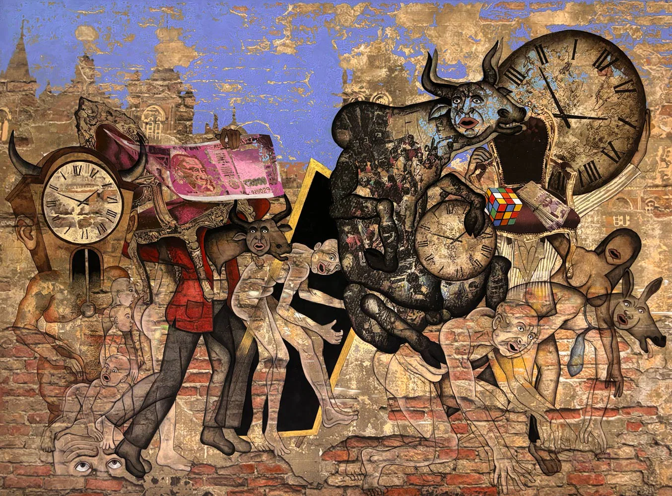 Roshan and Rohan are passionate artists bound by the intricate threads of twine, seamlessly weaving their creativity into a tapestry of expression. Their collaborative journey in the world of art has led them to a shared vision – a vision that goes beyond the canvas, transcending borders and resonating with society. Roshan holds a Bachelor of Fine Arts (BFA) from Sir J.J. Institute of Applied Art, Mumbai, and a Master of Fine Arts (MFA) in Painting from Indira Kala Sangit Vishwavidyalaya, Khairagarh. Rohan, on the other hand, completed his BFA and MFA in Creative Painting at Sir J.J. School of Art, Mumbai. Their educational background has laid a solid foundation for their artistic endeavours. Their artistic journey, marked by several notable exhibitions and projects, showcases their commitment to pushing the boundaries of contemporary art. One of their stand-out projects is a site-specific installation showcased in the 2nd edition of Ikattha by TEAM PO10TIAL in 2023, engaging viewers in a dialogue about space and context. In 2022, they were selected for the MASH Young Artist Exhibition at the India International Centre, Delhi, a prestigious platform for emerging artists. "Monsoon Art Exhibition" at Jehangir Art Gallery, Mumbai, and their contributions to the "Baadii Art Residency and Exhibition" in Himachal Pradesh, reflect their diverse artistic explorations and underscore their ongoing engagement with significant art events in India. Through these exhibitions and projects, Roshan and Rohan continue to explore and express complex themes, weaving a mythical, fictional world intertwined with nature, drama, fantasy, socio-political and environmental reflections.