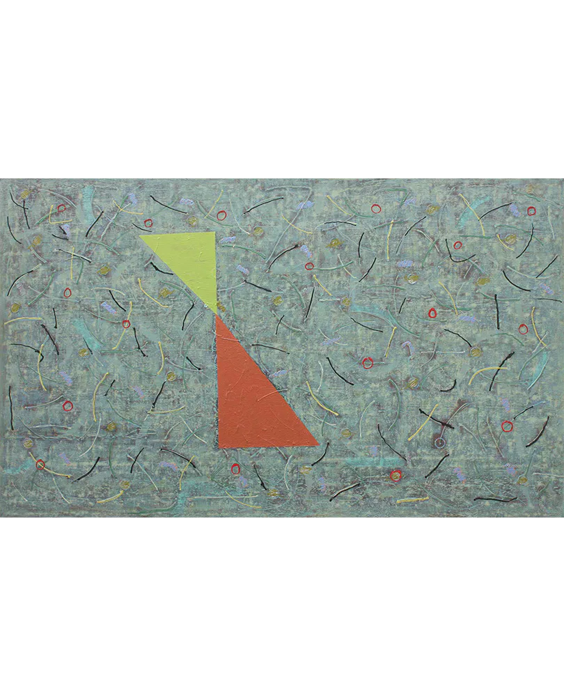 Born in 1958 in New Delhi, Harsha did his M.Sc. in Bio Science from The Birla Institute of Technology & Sciences, Pilani in 1980 and diploma in Business Management. He is a self taught artist and held his solo exhibitions at Singapore; Chennai; Mumbai and thrice in New Delhi. Harsha Vardhana creates abstract geometrical forms, inverted triangular structures are constructed within carefully demarcated areas of colour, which violently cut into one another – some blend in while others create obvious scars, bringing a distinctive character to piece. Harsha’s clusters of triangles and linear codes can evoke both classic and finely crackled and roughly modeled, plateau-like surfaces that present a characteristic combination of the past and present. He has also participated in several group shows across India and abroad including First Biennale of Contemporary Art, Romania in 2005; Indian artist for France, New Delhi Young contemporary artists, New Delhi in 2004; 2D / 3D, Hong Kong Visual Arts Centre, Hong Kong in 2003; Chennai and Mumbai in 2002; New Delhi in 2001; Post Modern Indian Art, USA in 1997; Bharat Bhawan Biennial of Contemporary Indian Art, Bhopal in 1996.