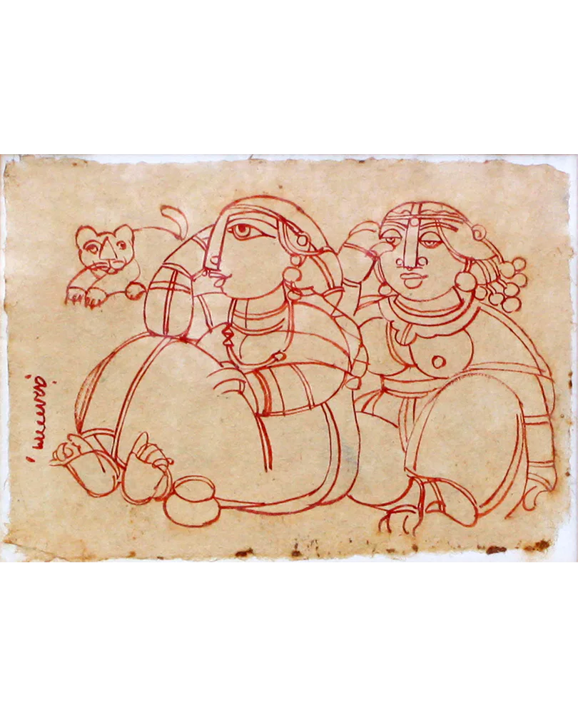 Ramananda Bandyopadhyay was born in 1936, Birbhum, West Bengal. He graduated in Fine Arts from Kala Bhavan, Santiniketan, Kolkata in 1957 under the guidance of Nandalal Bose. Ramananda’s work is typical of the Bengal School of Art. He is inspired by the simplicity and uncomplicated lives of the rustics. His work successfully recreates the innocence, simplicity and grace of a bygone era. A very distinct characteristic of his work is his palette – consisting of predominantly red, browns and greens. Drawing on the ancient and rich cultural heritage of India, Ramananda painted subjects based on Indian mythology and literature including Hindu Gods and Goddesses. Although he is inspired by mythology and heritage, his works are a blend of tradition and the contemporary, which gives Ramananda’s canvases the best of both worlds. He transforms mundane subjects like the middle-class going about their daily activities into paintings invested with a rare grace and beauty.