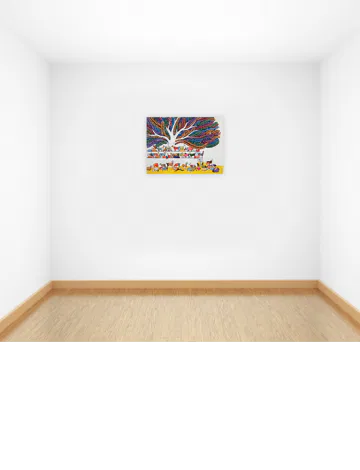 Born in 1985 in Uttar Pradesh, Lal Bahadur Singh is a young contemporary Indian artist. He studied art in the traditional Guru Shishya Parampara at his native place in Gazipur for three years before shifting his base to Delhi and doing his Bachelor followed Master degree in Fine Arts from the College of Art, Delhi. His paintings reflect his upbringing and the environment of Gazipur. His artworks focus on Indian villages which can be seen in the background of his paintings. The tree acts as a central image in most of his paintings along with the image of a cow, bull and birds. The characterization of the urban spaces through glimpses of urban living spaces, but devoid of humans themselves, is unique to his paintings. He is also an integral part of ‘Nishant Natya Manch’ a theatre group that brings home and conveys social messages through street plays and has also been involved in various social relief work and projects for the poor. Lal Bahadur Singh’s works have been exhibited in shows organized by several galleries across the city and beyond.