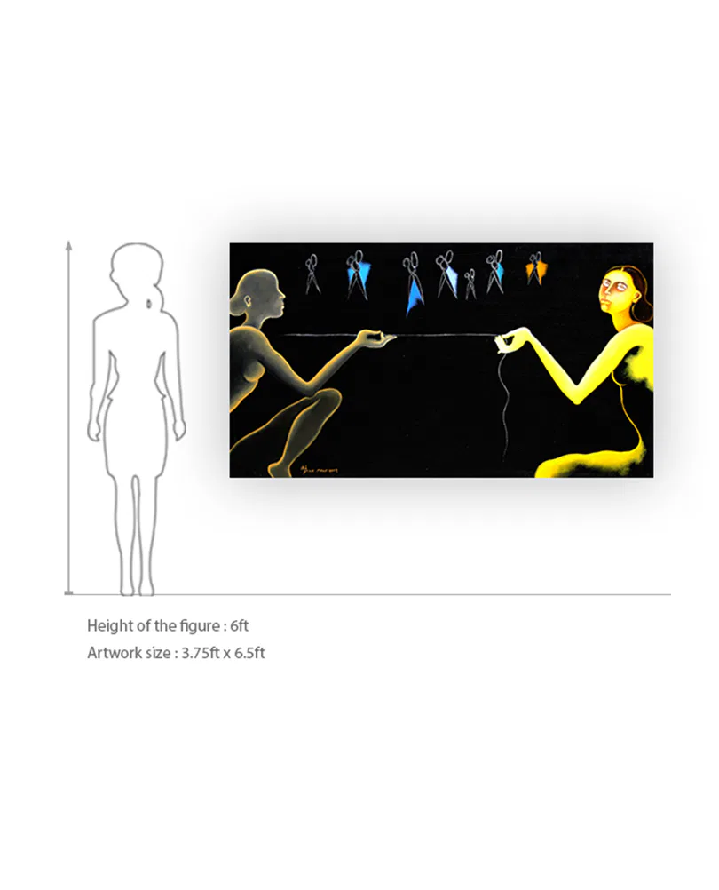 Caur’s works encompass paintings with watercolour, gauche and sculptures that are layered with motifs, myths and stories that the artist purposefully references. Spirituality, and time are recurring themes in her works. In conduction with that, she is also intrigued by the themes of life and death.  She has also collaborated with folk artists from the indigenous ethnic groups of  Warli and Godna and created artworks.