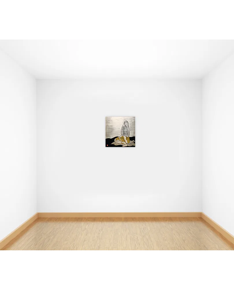 | Medium | Silver leaf, 22kt gold leaf, black & white gesso, oil & acrylic on wood panel |