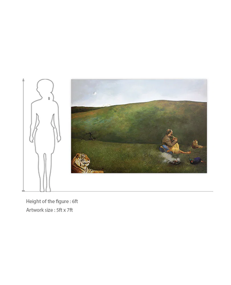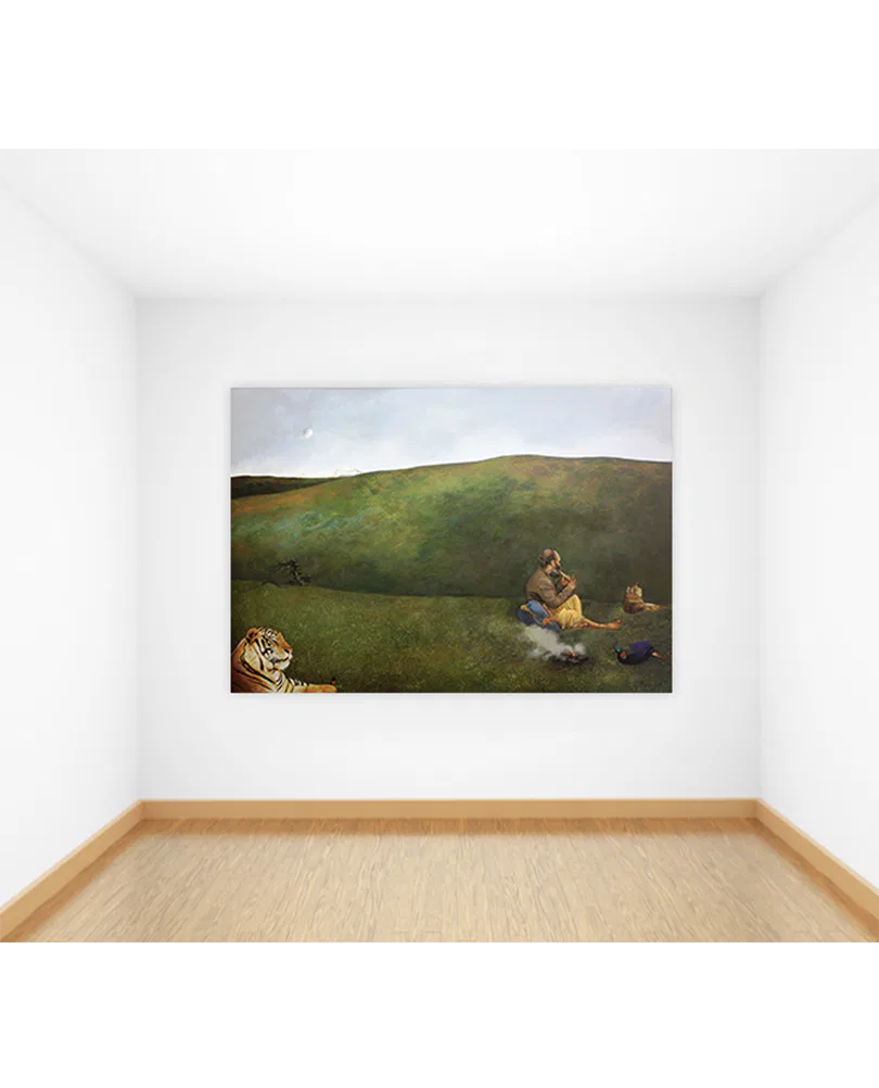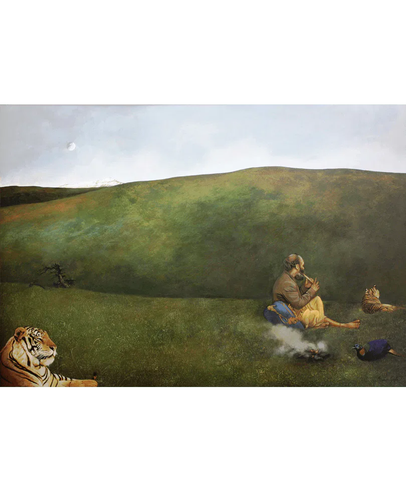Born in 1964 in Jammu, Suman Gupta is a self-taught artist. He graduated with a law degree from the University of Jammu in 1988. He practices creativity featuring scenes encompassing the natural beauty and simple but tough life of people. He blends the elements of an abstract-realist painter, blissfully besotted by the colours, forms and lights of a tranquil oasis of nature. An artist who makes simple humble folk his models, one who sits and watches an old musician playing and creates a counterpoint of compositions that bring in the pastoral surroundings of the Northern Himalayas. For Suman, nature is the site where all conflicts are resolved and harmony restored. Some of his pictures sometimes seem as physical as a wet meadow underfoot or a heavy mist on the cheek, the paint itself often has the texture of the earth. He used to work in different mediums such as tempera, dry brush, graphite on paper as well as oils and acrylic on canvas, Suman’s work has been exhibited in a number of solo and group shows within India and overseas. He is the recipient of several awards some of which include the Lalit Kala Akademi Annual Award, the “Lorenzo II Magnifico” at Florence Biennial 2011.