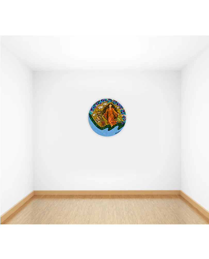 Kohli was born (1960) in Delhi. She has created her own niche in the world of contemporary art since past 35 years. Her creative repertoire is eclectic, encompassing a wide range of mediums ranging from painting, murals, experiential installation performances, films to installations, sculptures and each a unique expression of her style. Working with oils on canvas, inks, mixed mediums, ceramics and printmaking, her work has redefined the basic contours of figurative art in India, finding admirers across the planet. Gifted as she is with a prolific brush of creative energy Kohli moved through the ‘Unborn Series’ and finally arrived at ‘The Golden Womb’ or the ‘Hiranya Garbha Koham’ series that propelled her into an orbit of her own. Her work captures in its entirety the perpetual change, order, strength and fragility, colors and rhythm, melody and exuberance of the elemental world. It talks about the creation, the cosmic journey, of the oneness of being and the final liberation in relation to the golden womb or hiranyagarbha. She works in wide range of mediums ranging from painting, murals, experiential installation performances, films, installations, sculptures, all with a unique expression of her style.