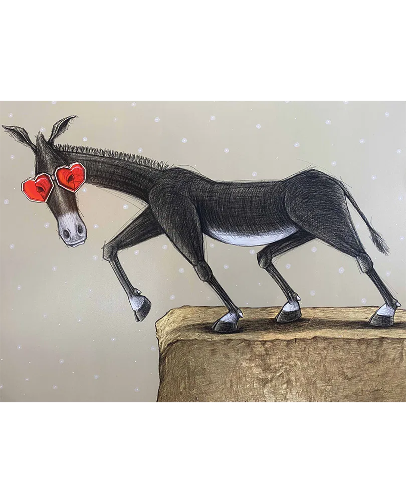 Born in 1984 in Delhi, Gurmeet completed his Bachelor of Fine Arts in Painting followed by Master of Fine Arts in Printmaking from the College of Art, Delhi. His works are based on narratives at two levels – the personal and the societal. The images are sarcastic expressions that have their origin in deeply felt emotions. The heart, the crown, the jars, the soda bottles, the donkey, the owl, and the cow are amongst the various symbols that he presents in his works. The series depicts examples of human behavior and interactions as satire, using animals as metaphors. He works in different mediums like charcoal, acrylic, oil, watercolour, lithograph, etching, linocut, and his personal favorite – woodcut. The usage of colour, especially red, makes the central idea of the art works even more salient. Gurmeet has held several group and solo shows.