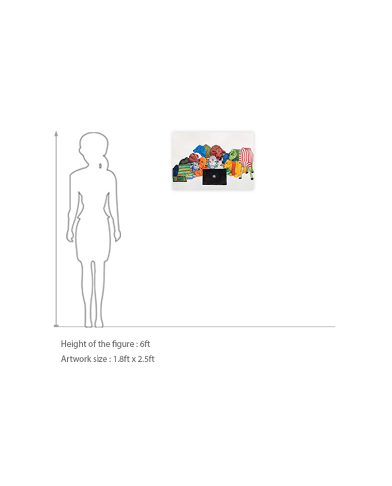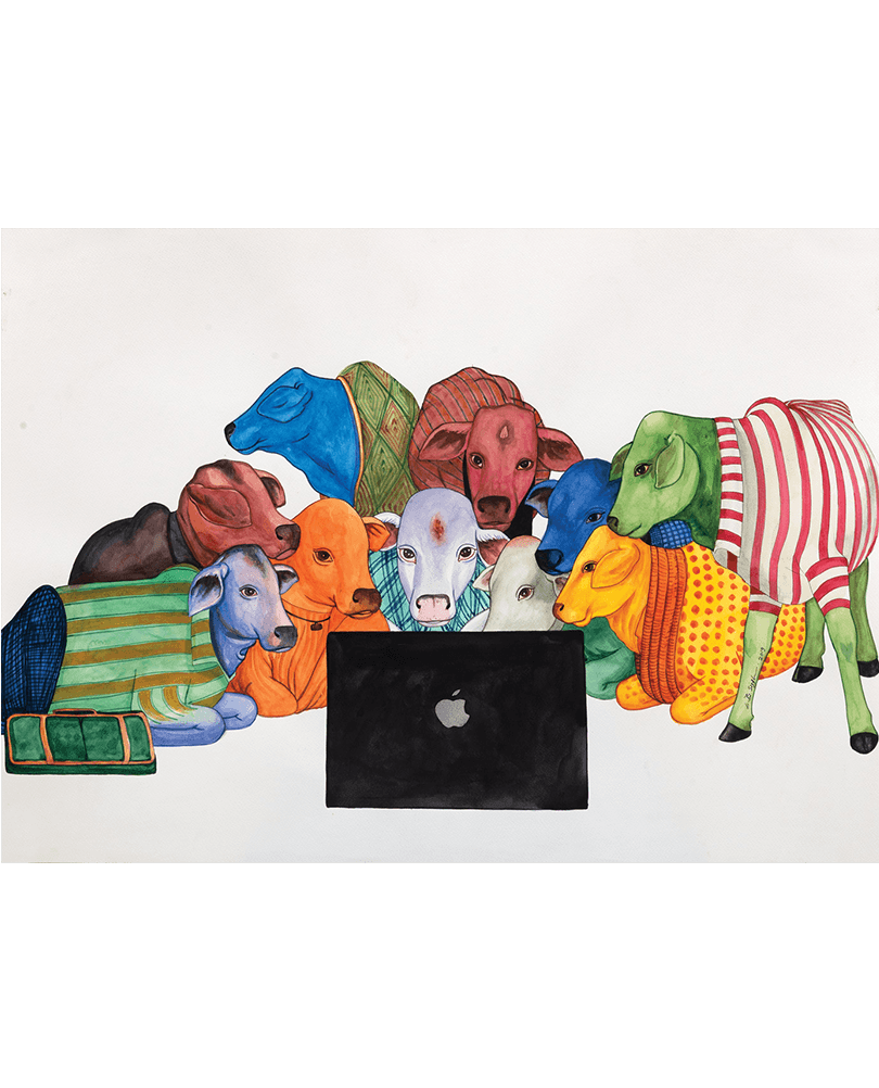 Born in 1985 in Uttar Pradesh, Lal Bahadur Singh is a young contemporary Indian artist. He studied art in the traditional Guru Shishya Parampara at his native place in Gazipur for three years before shifting his base to Delhi and doing his Bachelor followed Master degree in Fine Arts from the College of Art, Delhi. His paintings reflect his upbringing and the environment of Gazipur. His artworks focus on Indian villages which can be seen in the background of his paintings. The tree acts as a central image in most of his paintings along with the image of a cow, bull and birds. The characterization of the urban spaces through glimpses of urban living spaces, but devoid of humans themselves, is unique to his paintings. He is also an integral part of ‘Nishant Natya Manch’ a theatre group that brings home and conveys social messages through street plays and has also been involved in various social relief work and projects for the poor. Lal Bahadur Singh’s works have been exhibited in shows organized by several galleries across the city and beyond.