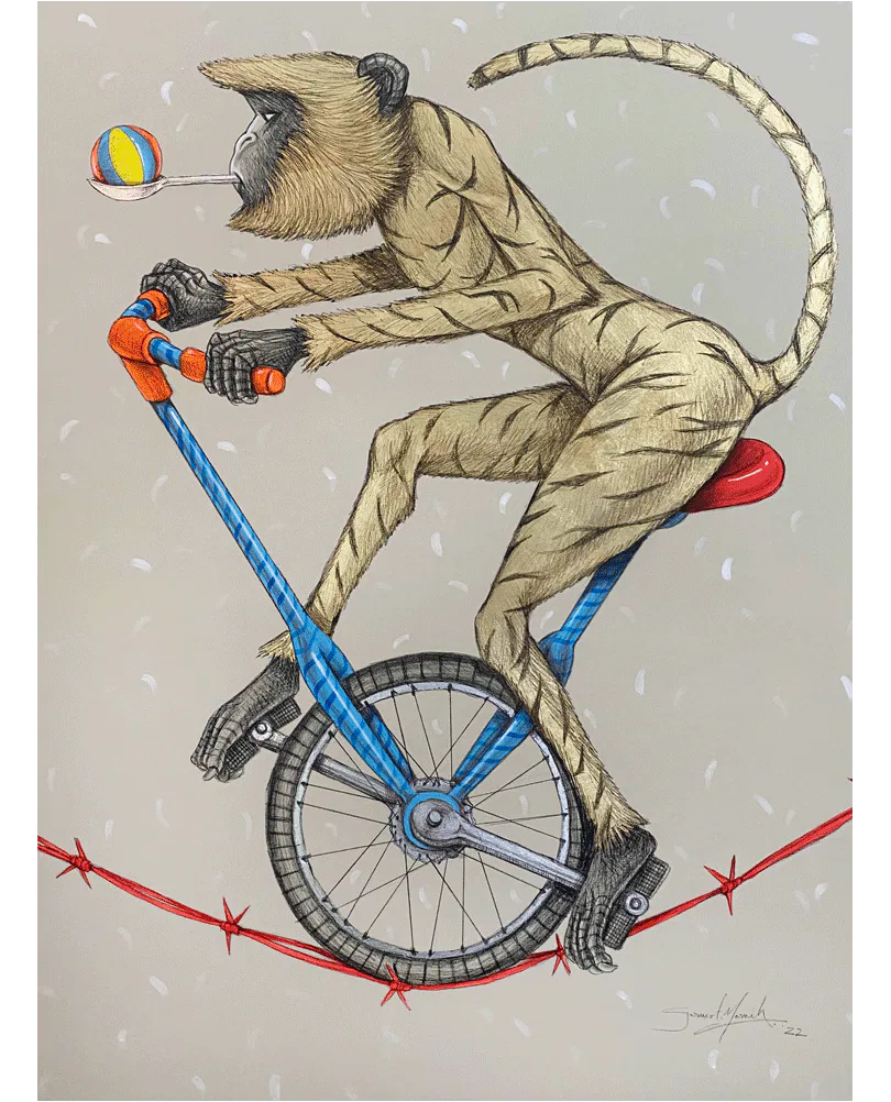 Born in 1984 in Delhi, Gurmeet completed his Bachelor of Fine Arts in Painting followed by Master of Fine Arts in Printmaking from the College of Art, Delhi. His works are based on narratives at two levels – the personal and the societal. The images are sarcastic expressions that have their origin in deeply felt emotions. The heart, the crown, the jars, the soda bottles, the donkey, the owl, and the cow are amongst the various symbols that he presents in his works. The series depicts examples of human behavior and interactions as satire, using animals as metaphors. He works in different mediums like charcoal, acrylic, oil, watercolour, lithograph, etching, linocut, and his personal favorite – woodcut. The usage of colour, especially red, makes the central idea of the art works even more salient. Gurmeet has held several group and solo shows.